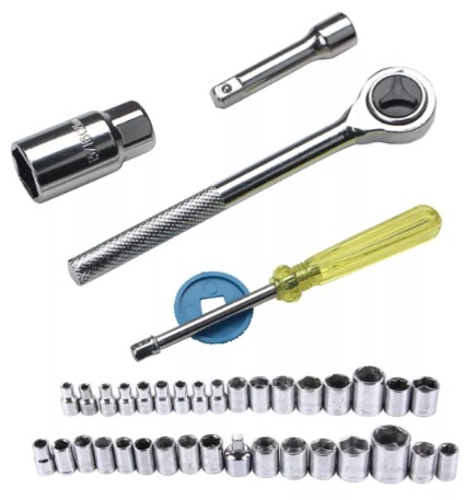 - 12 Copas imperiales de 1/4" (5/32, 3/16, 7/32, 1/4, 9/32, 5/16, 11/32, 3/8, 13/32, 7/16, 15/32, 1/2).